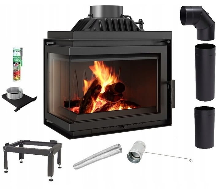 Narożny wkład kominkowy o drzwiach typu BS (szyby łączone). Dzięki takiemu rozwiązaniu możesz podziwiać ogień z dwóch stron w dwóch pomieszczeniach jednocześnie. Idealne rozwiązanie do łączonych pomieszczeń.
