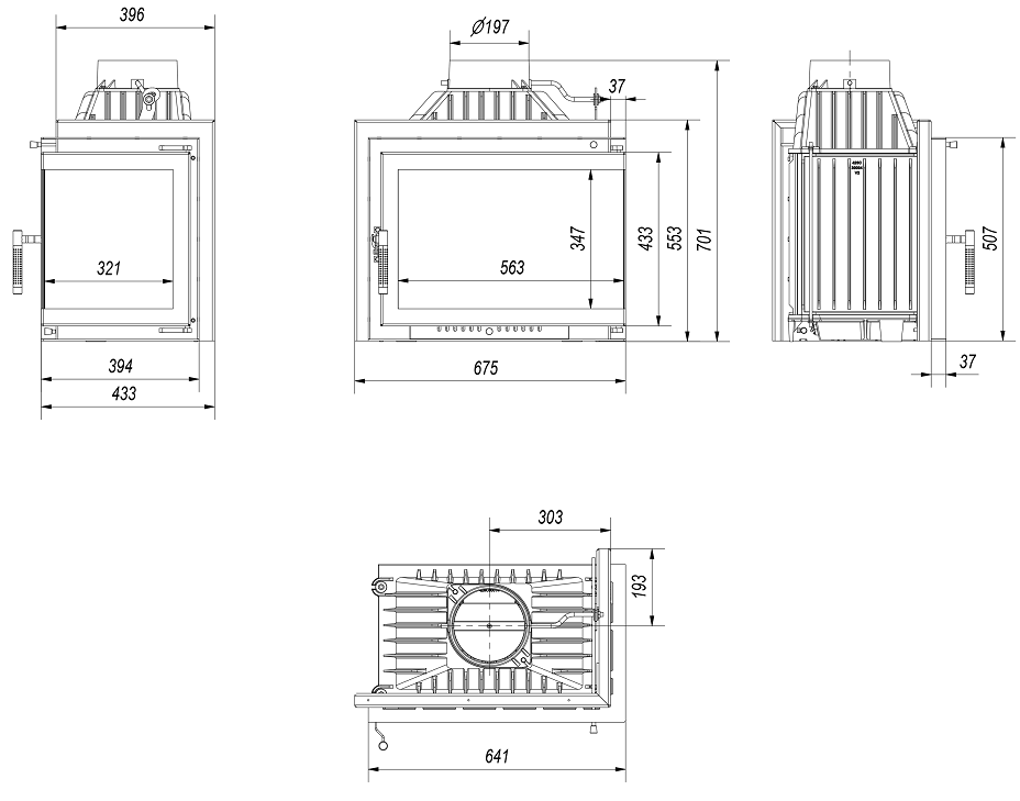 - Frontowa szyba wytrzymuje nawet do 660°C