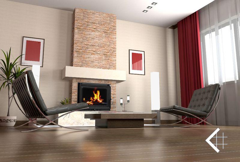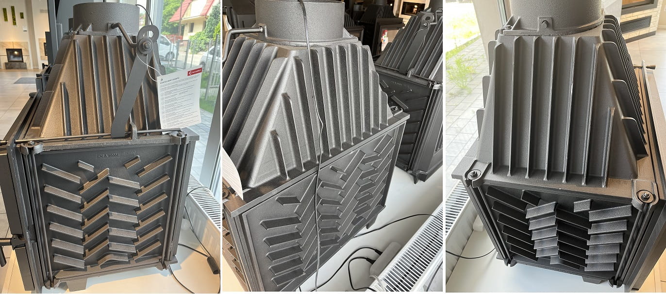 Maksymalne wykorzystanie ciepła odbywa się dzięki gęsto rozmieszczonym radiatorom na ścianach wkładu kominkowego.