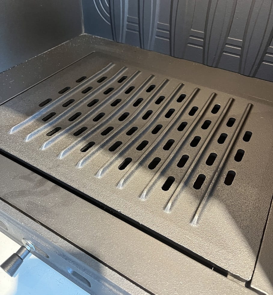 We wkładzie zastosowano solidny, żeliwny ruszt. Można go wyjmować i czyścić.