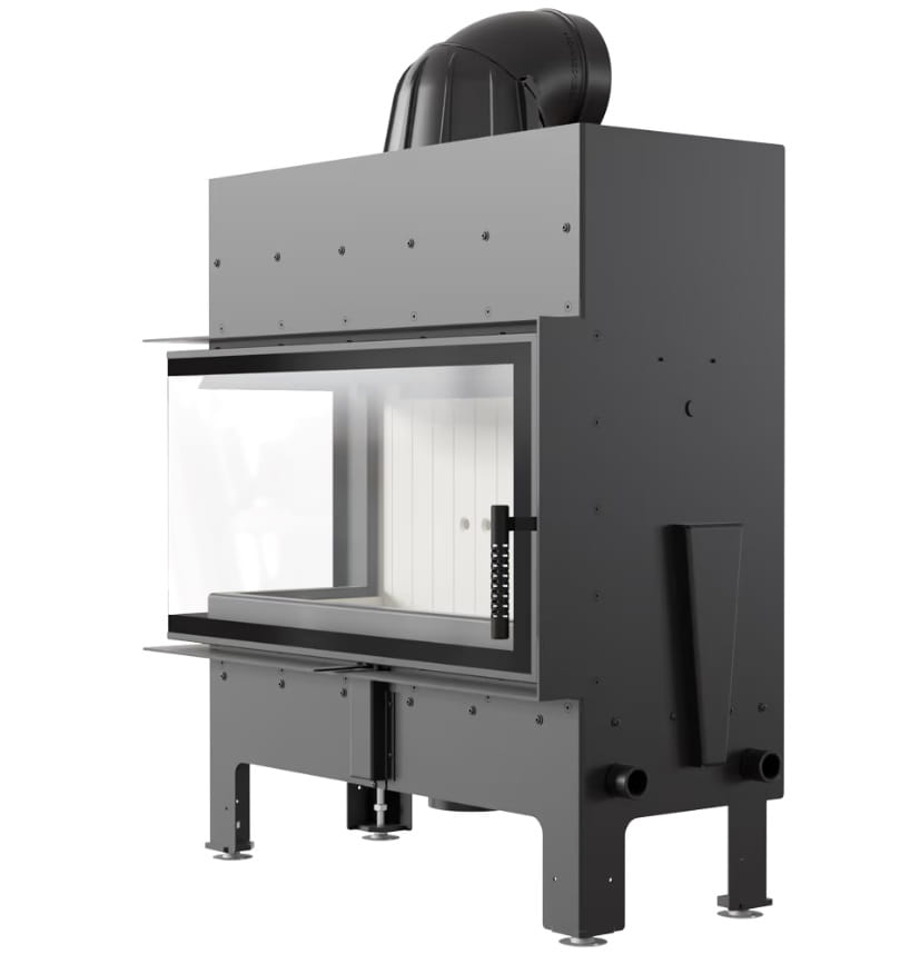 Zestaw 2: wkład kominkowy powietrzny stalowy Floki L lewy BS z termotec + dolot, wylot fi 200,moc 12 kW + akcesoria
