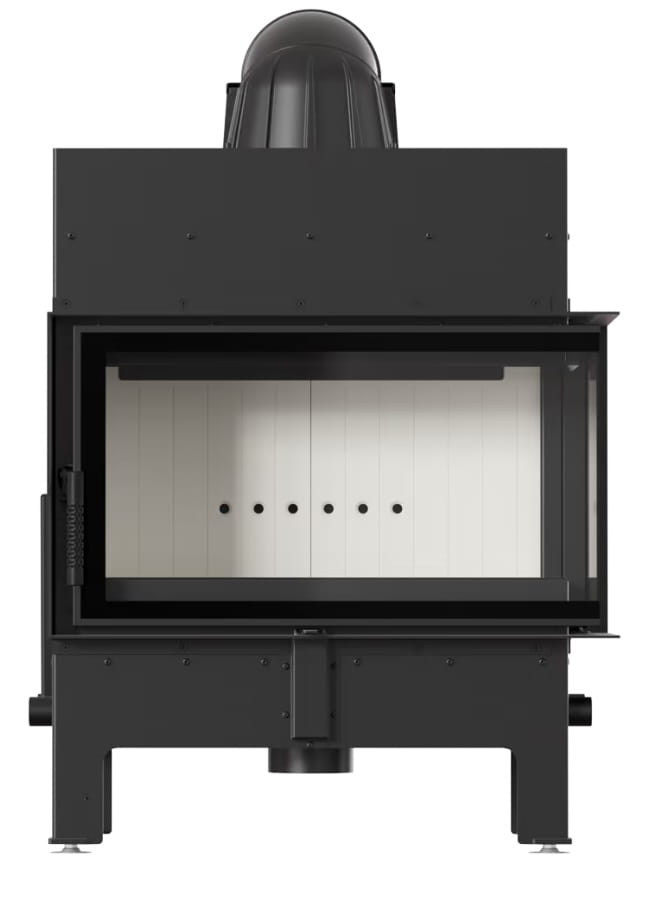 - Wkład posiada potrójny system dopowietrzenia komory spalania: powietrze pierwotne - skierowane jest na płytę, na której odbywa się spalanie; powietrze wtórne dostarczane jest otworami w tylnej ścianie. Dodatkowo we wkładzie zastosowany jest system czystej szyby (kurtyna powietrza);