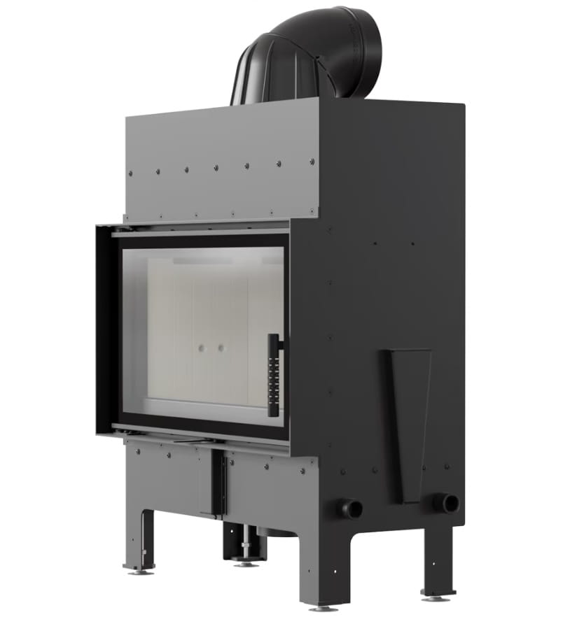 Jest ona instalowana w ścianie lub w czopuchu obudowy kominkowej.