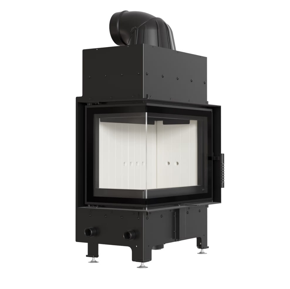Wkład o ciekawym kształcie, z bocznym przeszkleniem. Dzięki dwustronnej wizji ognia i delikatnej ramie frontowej doskonale wpisuje się w stylistykę nowoczesnych wnętrz. Tego typu kominek jest często wybierany w przypadku otwartych pomieszczeń, w których łączone są różne przestrzenie, np. salon z jadalnią. Zastosowana w kominku specjalnie profilowana płyta dolna sprawia, że mieści on w sobie większą ilość drewna. Nowoczesne rozwiązania zastosowane w urządzeniu gwarantują oszczędność energii i sprawiają, że jego obsługa i czyszczenie są bezproblemowe.