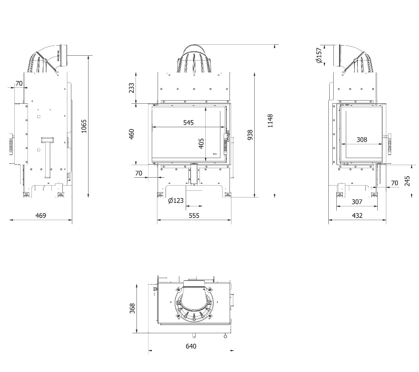 - Wyjmowany ruszt i popielnik ułatwiają utrzymanie wkładu w czystości.