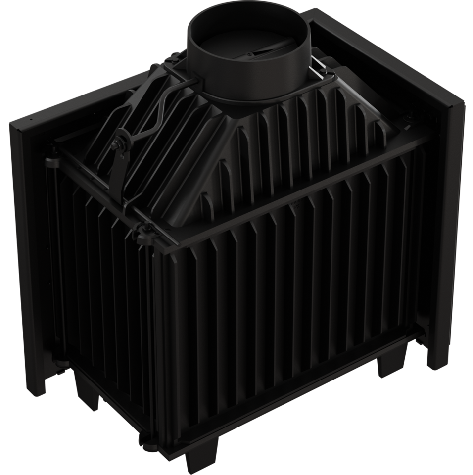 Maksymalne wykorzystanie ciepła odbywa się dzięki gęsto rozmieszczonym radiatorom na ścianach wkładu kominkowego.