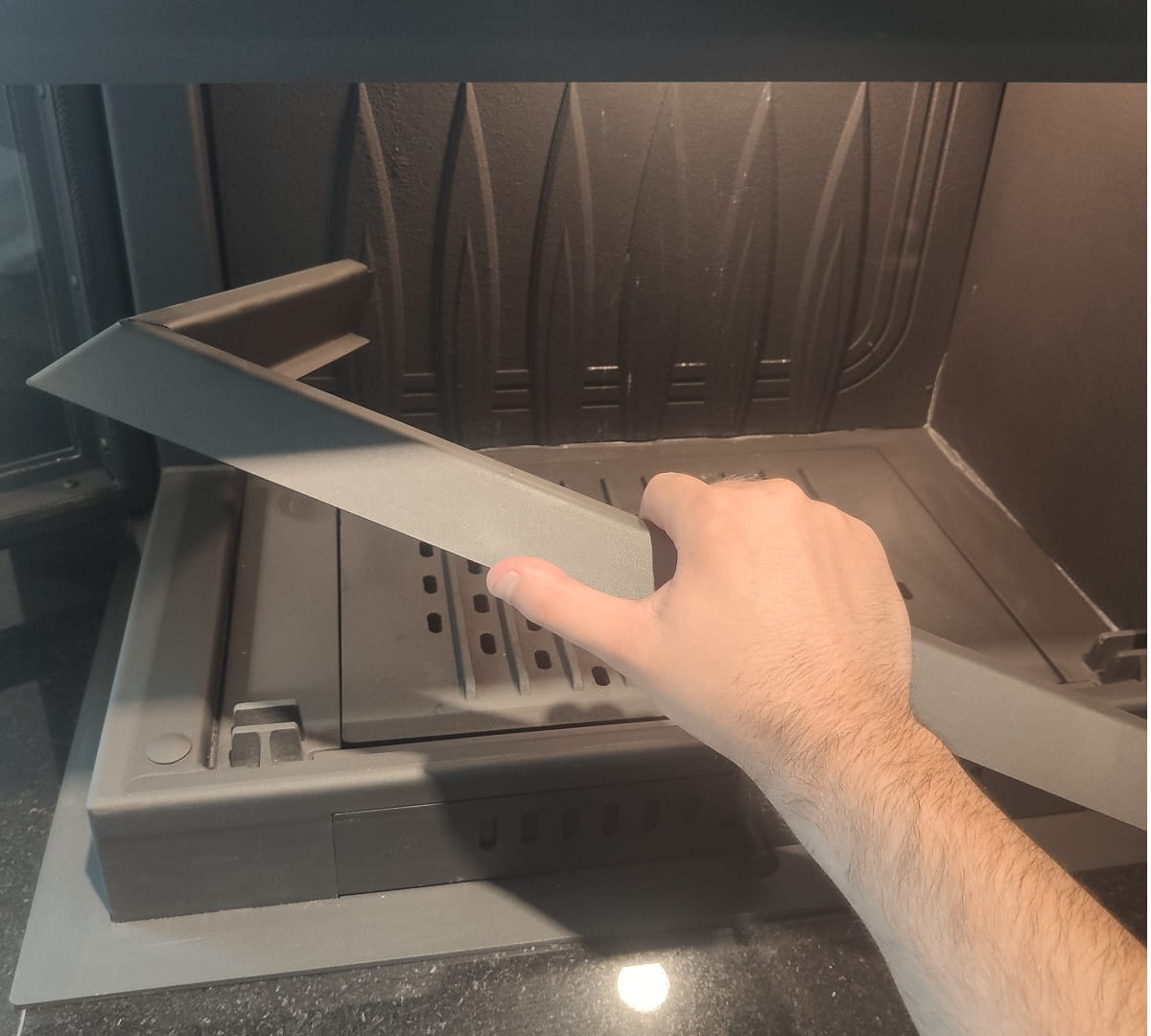 - Wyjmowany ruszt i popielnik ułatwiają utrzymanie wkładu w czystości.