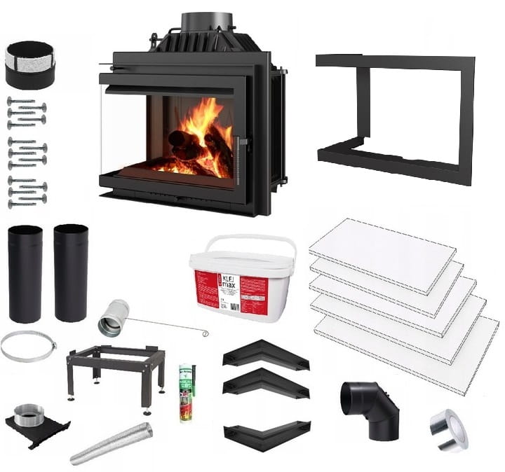 Zestaw 20: Wkład kominkowy powietrzny żeliwny z szybrem Simple M/S 8 lewy BS, moc 8kw, wylot fi 200 + akcesoria