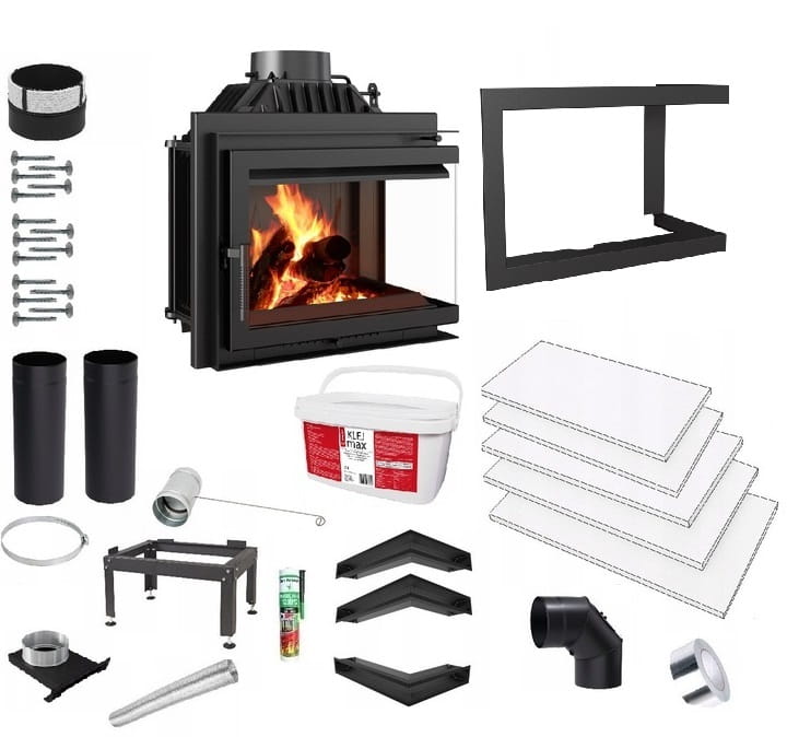 Zestaw 20: Wkład kominkowy powietrzny żeliwny z szybrem Simple M/S 8 prawy BS, wylot fi 200, moc 8 kw + akcesoria