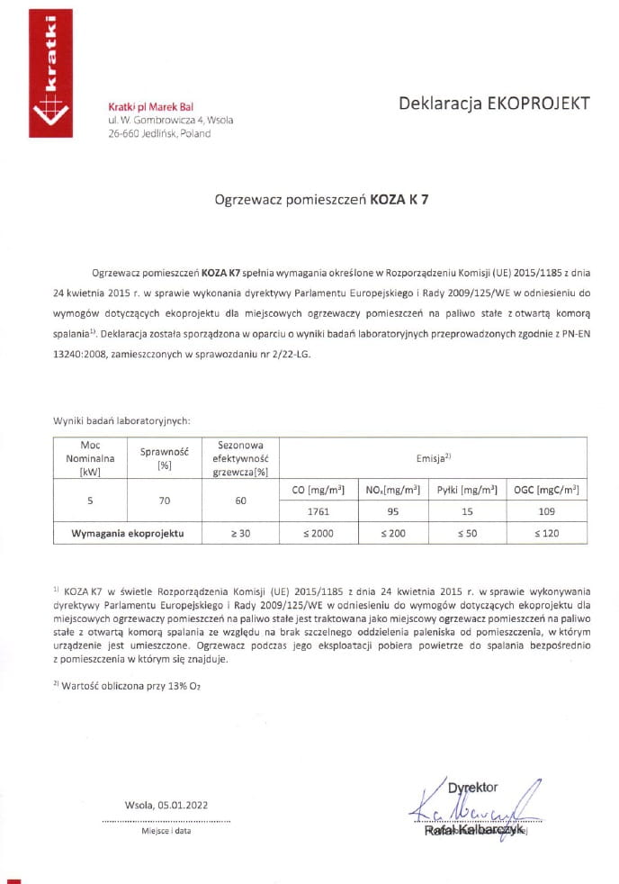 - Spełnia wymagania EKOPROJEKTU: Tak