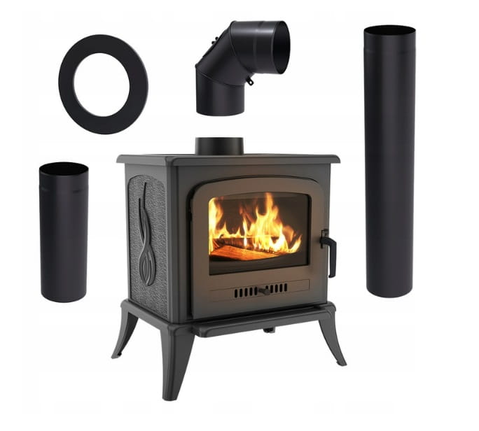 Zestaw 3: Piec wolnostojący Koza K7 z wylotem spalin fi 130, moc 5 kW + akcesoria