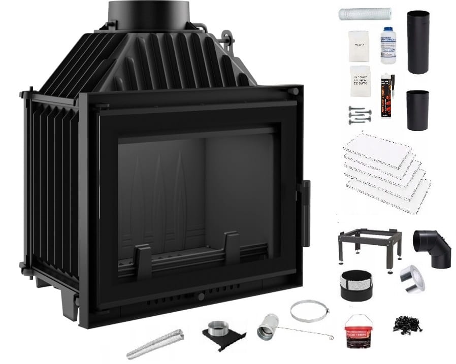 Zestaw 3: Wkład kominkowy powietrzny żeliwny z szybrem Maja 8 DECO + dolot, wylot fi 200, moc 8kw + akcesoria
