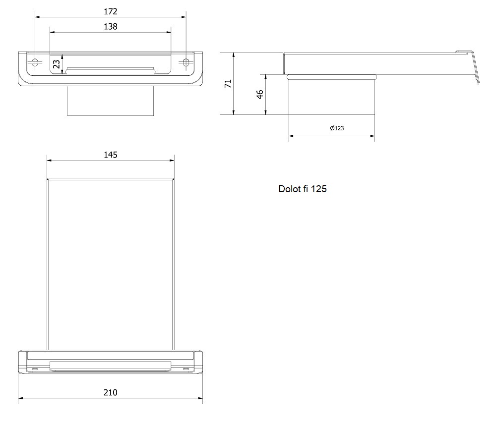 Dolot zimnego powietrza fi 100 lub fi 125 do wkładów żeliwnych, który ma na celu doprowadzenie świeżego powietrza do paleniska z zewnątrz budynku. Nie wymaga montażu dodatkowego elementu: przejście dolot - rura. Montuje się go na dole z tyłu wkładu.