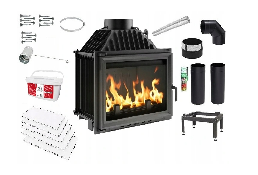 Zestaw 3: Wkład kominkowy powietrzny żeliwny z szybrem Maja + dolot, wylot spalin fi 200, moc 8kw + akcesoria