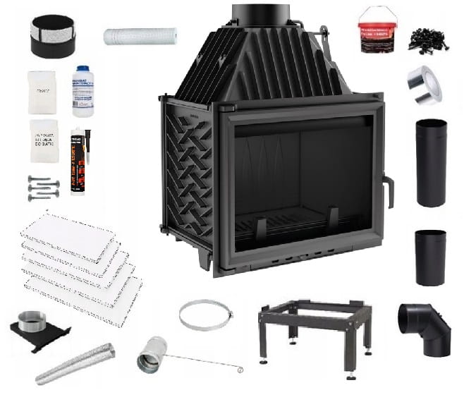 Zestaw 3: Wkład kominkowy powietrzny żeliwny z szybrem Zuzia + dolot, wylot fi 200, moc 15kw + akcesoria