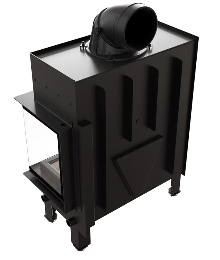 Zestaw 3: wkład kominkowy powietrzny stalowy Floki M prawy BS z termotec + dolot, wylot fi 200,moc 10 kW + akcesoria