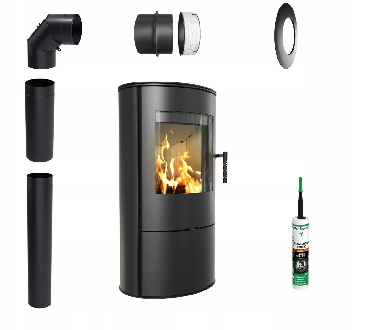 Zestaw 4: Piec wolnostojący Koza Rollo z termotec z wylotem spalin fi 150 + dolot, moc 7kW + akcesoria