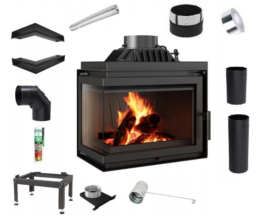 Zestaw 4: Wkład kominkowy powietrzny żeliwny z szybrem Simple M/S 8 lewy BS + dolot , moc 8kw, wylot fi 200 + akcesoria