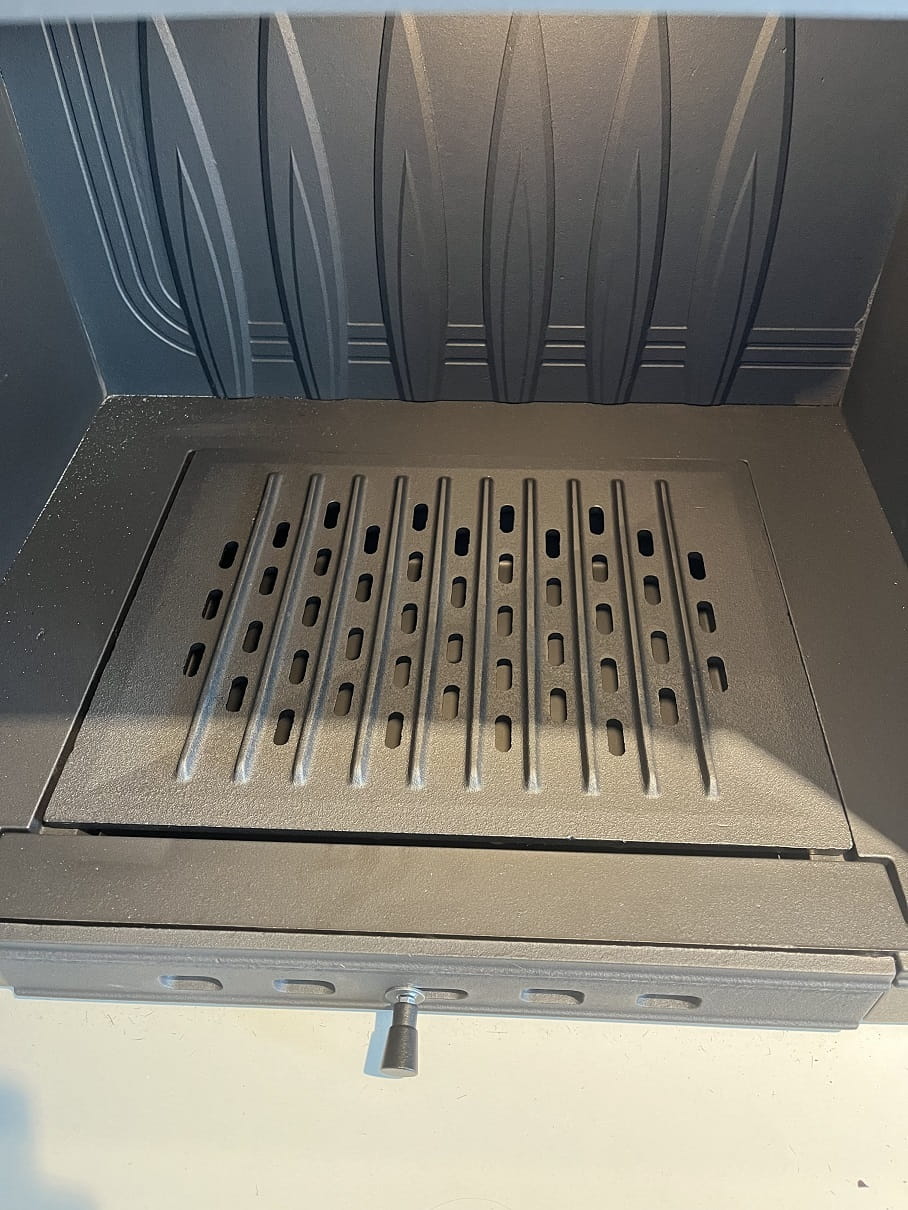 We wkładzie zastosowano solidny, żeliwny ruszt. Można go wyjmować i czyścić.