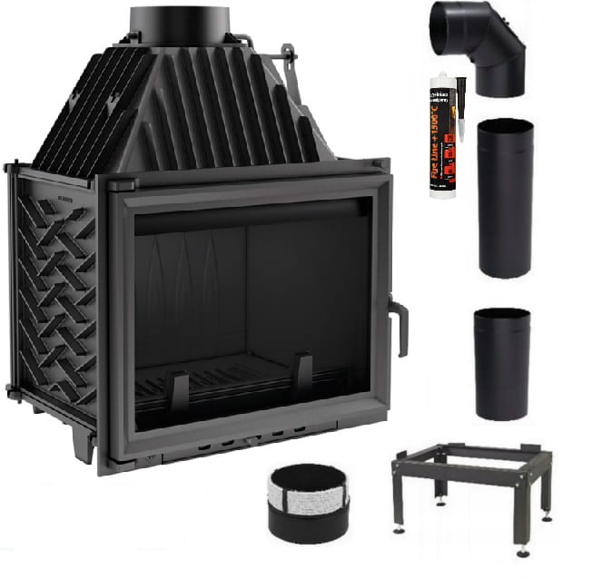 Zestaw 4: Wkład kominkowy powietrzny żeliwny z szybrem Zuzia, wylot fi 200, moc 15kw