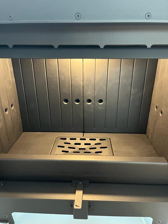 - Wyjmowany ruszt i popielnik ułatwiają utrzymanie wkładu w czystości.