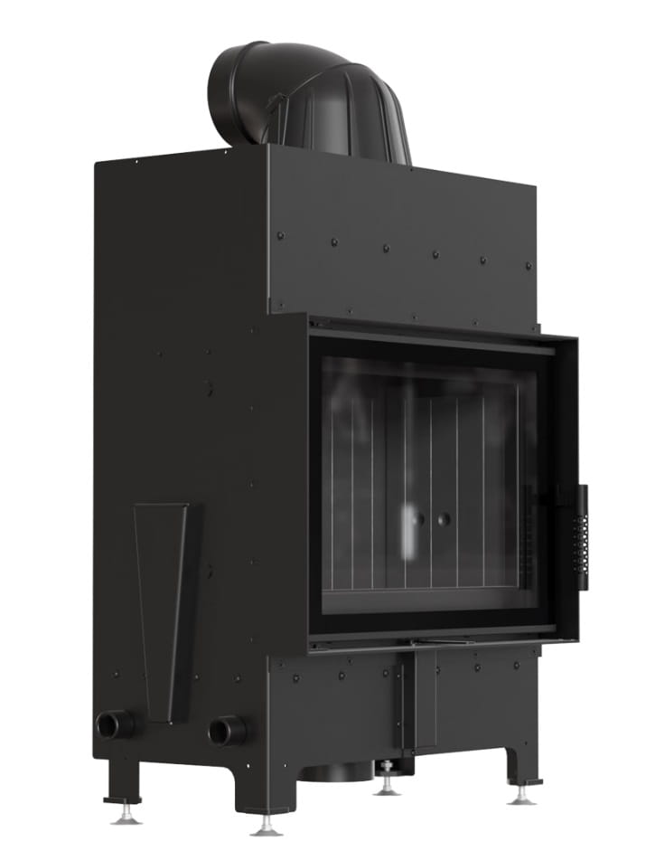 Maksymalne wykorzystanie ciepła odbywa się dzięki gęsto rozmieszczonym radiatorom na ścianach wkładu kominkowego.