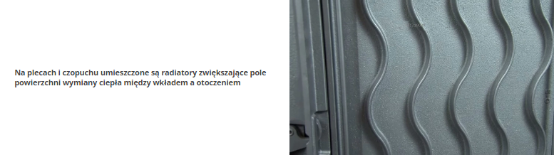 Maksymalne wykorzystanie ciepła dzięki gęsto rozmieszczonym radiatorom oraz ściankom paleniska wykonanym z wysokiej jakości żeliwa o grubości 8 mm.