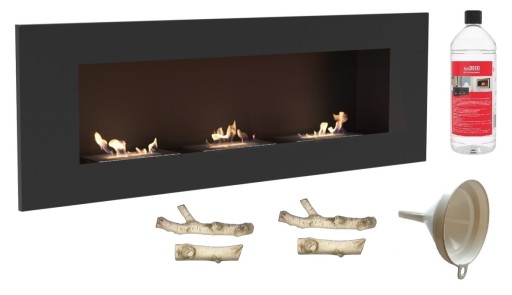biokominek DELTA 3 czarny 1200x400 z 3 biowkładkami z certyfikatem TÜV + drewienka ceramiczne