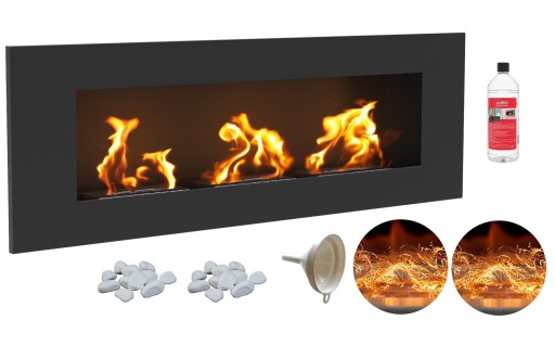 biokominek DELTA 3 czarny 1200x400 z 3 biowkładkami z certyfikatem TÜV + efekt żarzenia