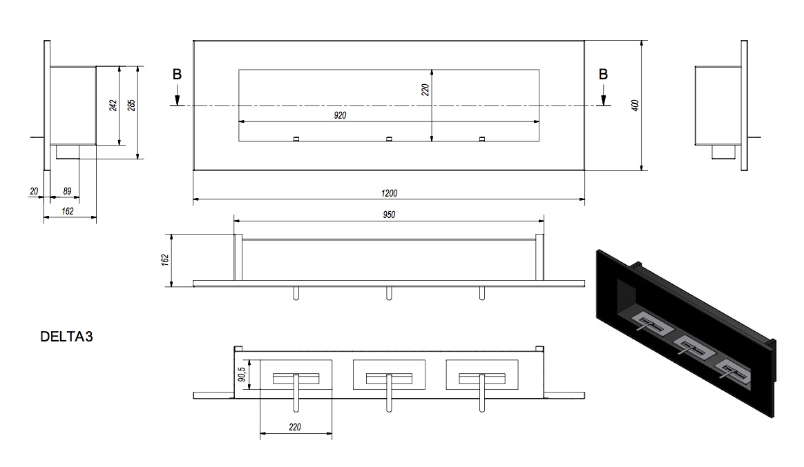 Biokominek DELTA 3 czarny