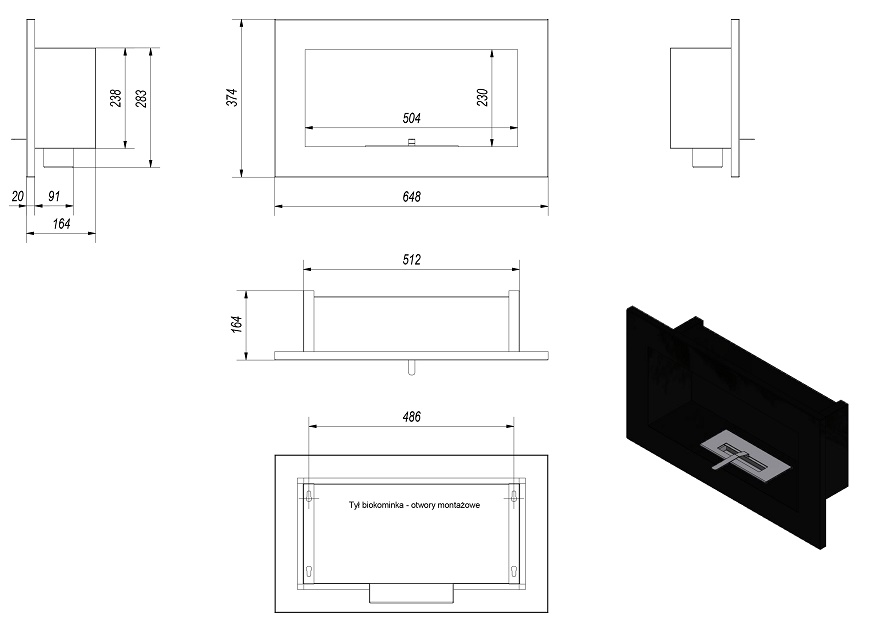 - indywidualna zabudowa: można zamontować we wnęce lub na specjalnie zbudowanym do tego celu elemencie dekoracyjnym wystającym ze ściany. Dylatacja: bezpieczna odległość od ściany (1,5 cm) pozwala na obieg powietrza wokół biokominka, bez dodatkowych listew montażowych.