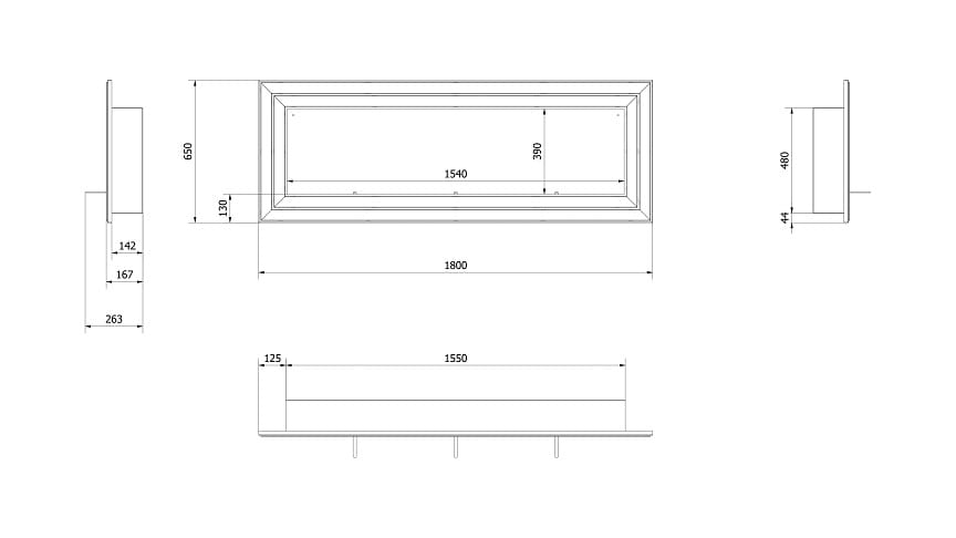 - indywidualna zabudowa: można zamontować we wnęce lub na specjalnie zbudowanym do tego celu elemencie dekoracyjnym wystającym ze ściany. Dylatacja: bezpieczna odległość od ściany (1,5 cm) pozwala na obieg powietrza wokół biokominka, bez dodatkowych listew montażowych.