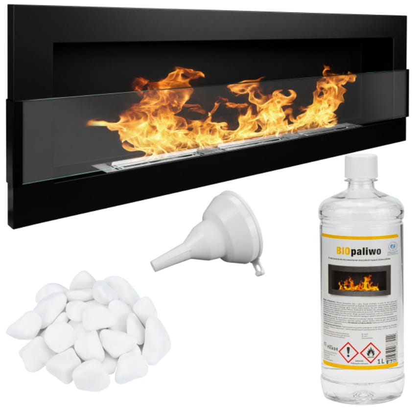 Biokominek 1200x400 czarny mat to produkt w całości wykonany z wysokiej jakości stali który został pokryty farbą odporną na działanie wysokiej temperatury. W tym modelu biokominek wyposażono w wykonane ze stali nierdzewnej palniki z podwójnym dnem oraz pokrywą do regulacji płomienia. W palnikach dodatkowo została umieszczona bezpieczna biowkładka, która podnosi bezpieczeństwo podczas użytkowania, chroniąc przed rozlaniem biopaliwa. Całość tworzy piękną, długą linię ognia.