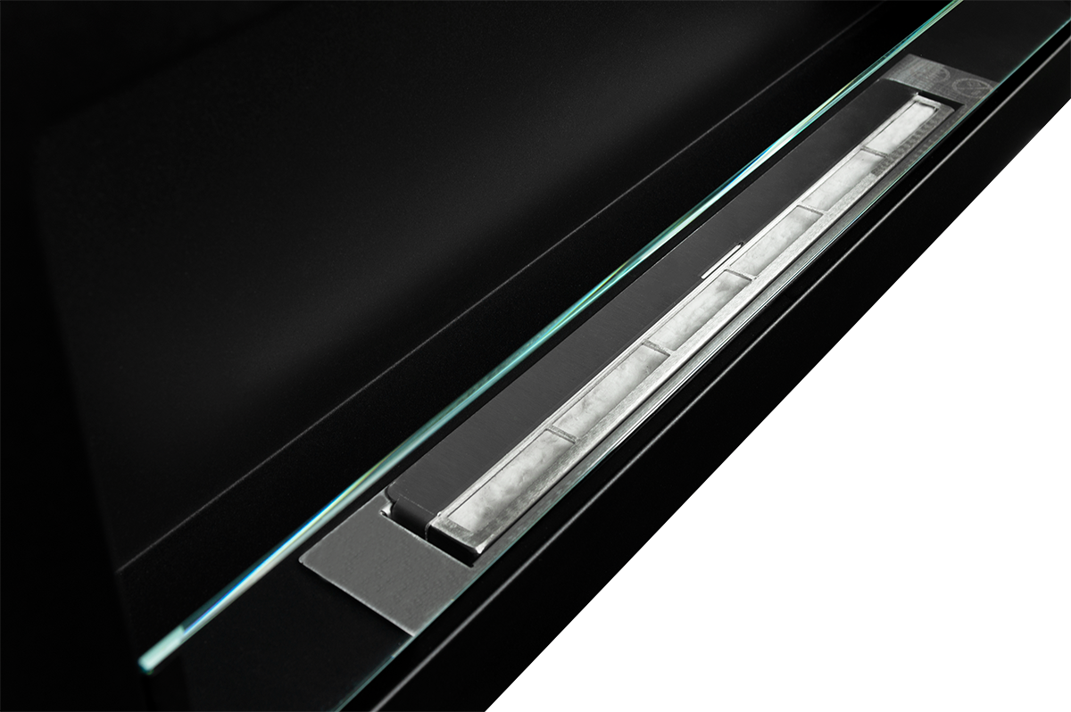 Biokominek 900x400 wyposażono w wykonany ze stali nierdzewnej 6-punkowy palnik z ciągłą linią ognia o łącznej długości 535 mm, który posiada: