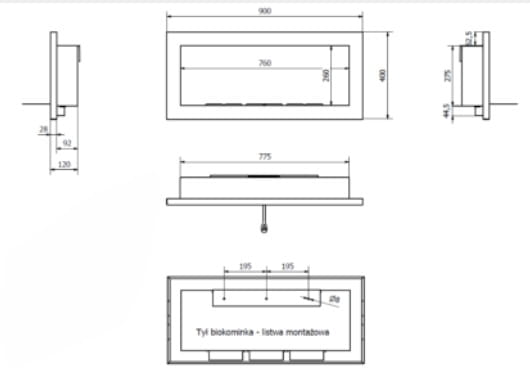 - GŁĘBOKOŚĆ Najmniejsza na Allegro głębokość zabudowy – tylko 90mm. Całkowita głębokość oferowanego biokominka to tylko 120mm.