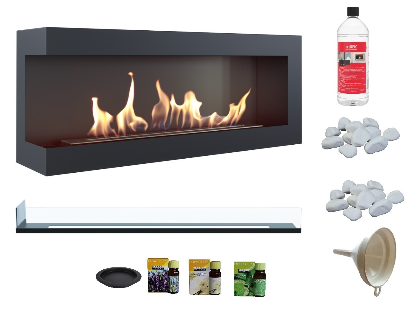 biokominek narożny DELTA lewa 1200 czarny z szybą z certyfikatem TÜV + aromaterapia 3 olejki