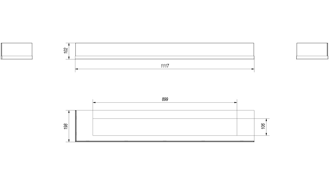 Indywidualna zabudowa - wymiary wnęki pod zabudowę: (szerokość x wysokość x głębokość) 1105 x 366 x 200 mm