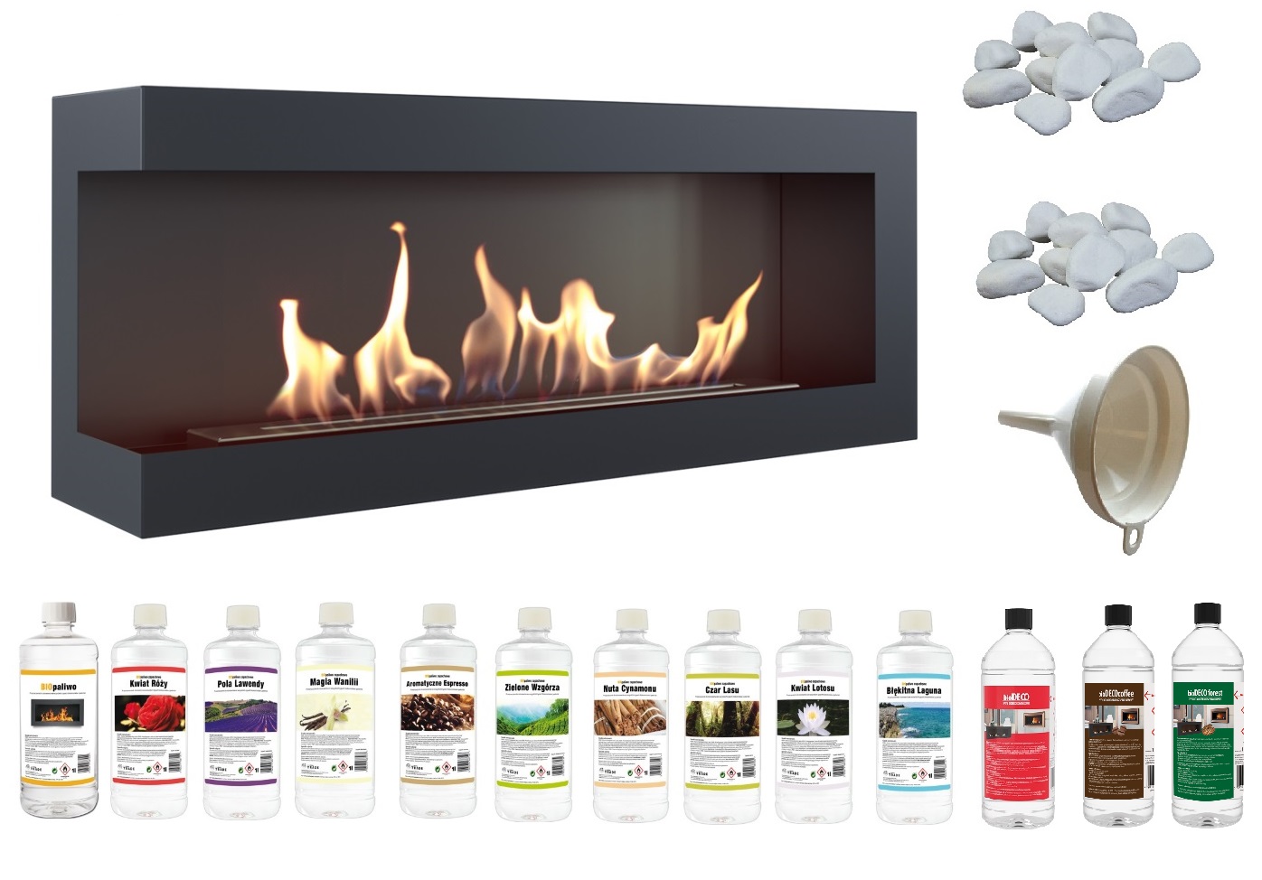 biokominek narożny DELTA lewa 1200x280 czarny z certyfikatem TÜV + zestaw biopaliw