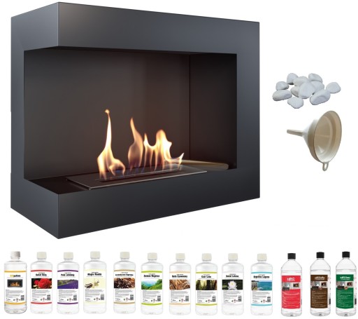 Biokominek DELTA lewa 600x280 + zestaw 13 różnych butelek biopaliw