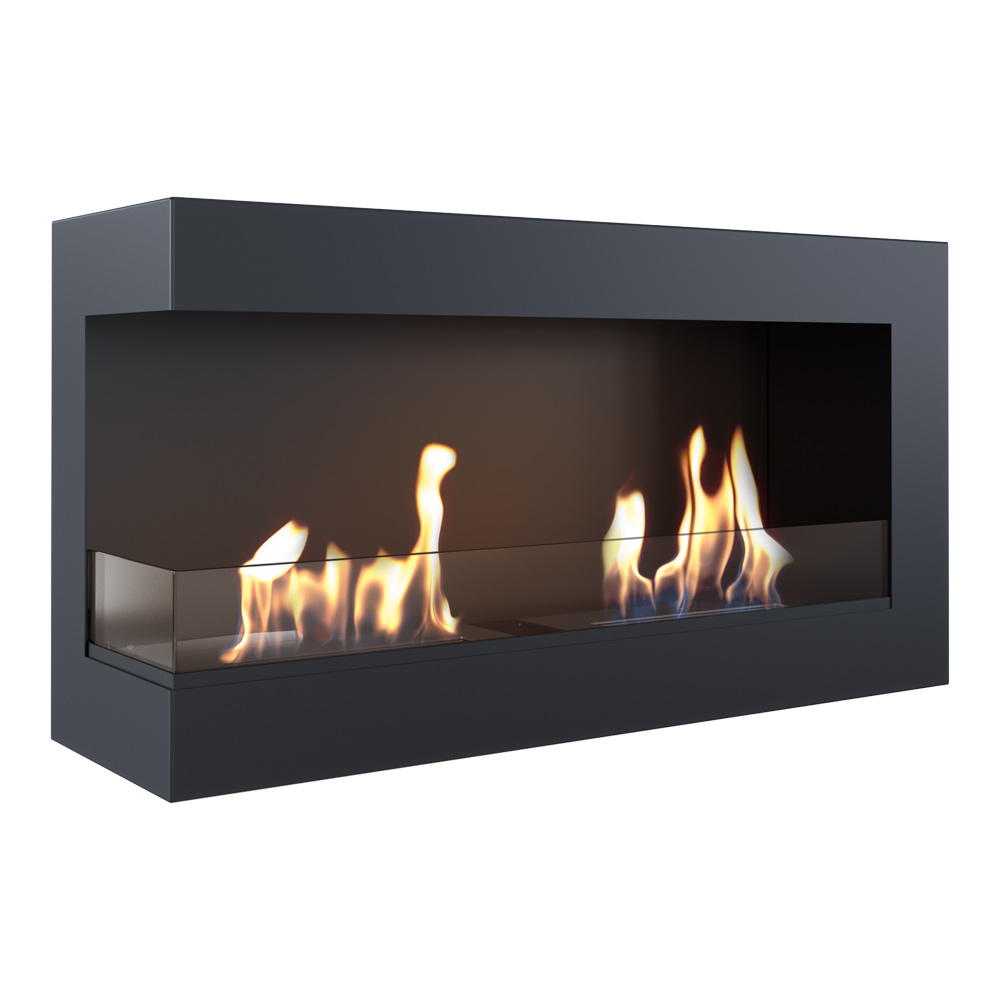 Narożny biokominek otwarty jest idealnym rozwiązaniem do zabudowy we wnęce. Dzięki dwustronnej wizji ognia, panoramicznemu wyglądowi i delikatnej ramie frontowej, doskonale wpisuje się w stylistykę nowoczesnych wnętrz.