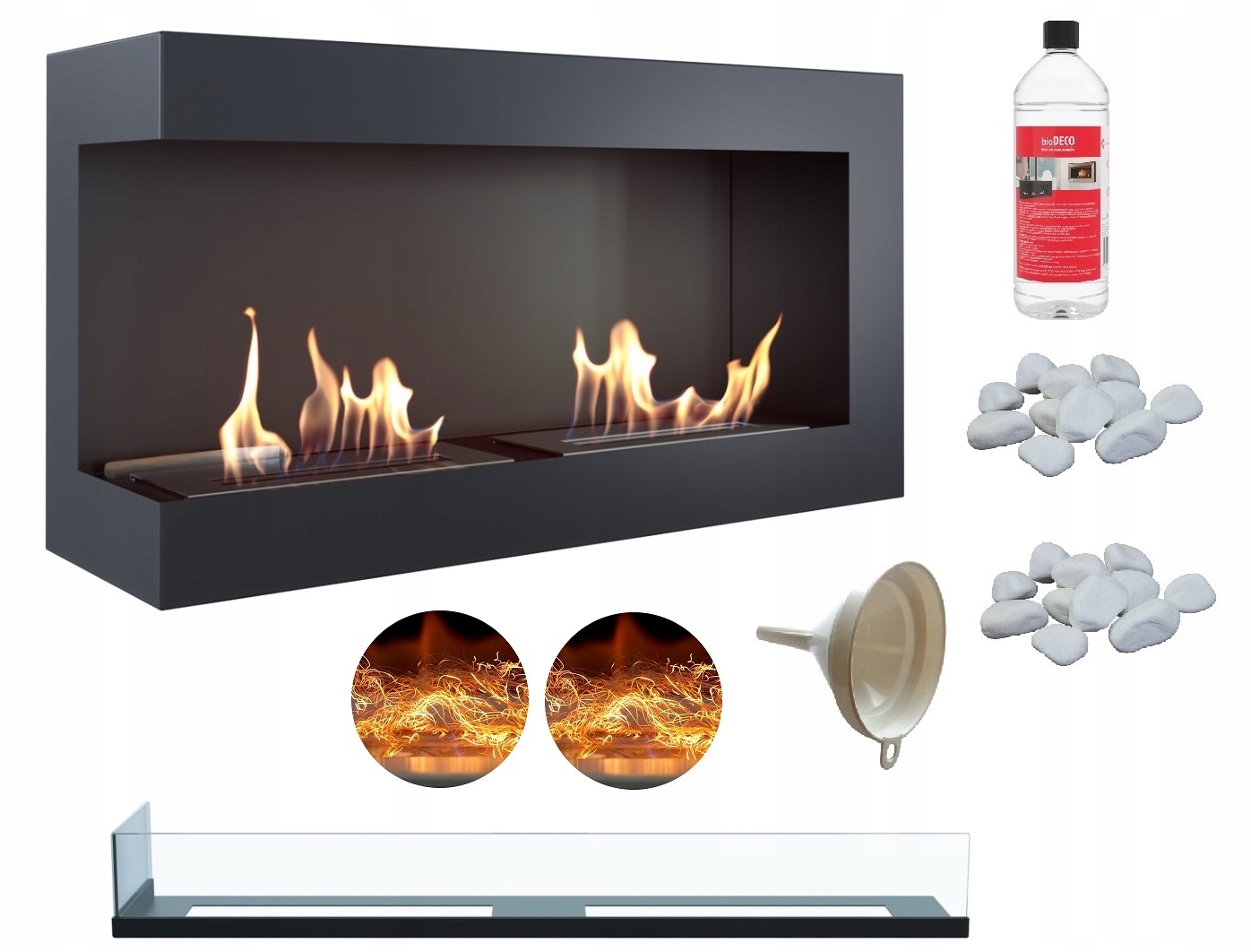 Dzięki dwustronnej wizji ognia, panoramicznemu wyglądowi i delikatnej ramie frontowej, doskonale wpisuje się w stylistykę nowoczesnych wnętrz. Tego typu biokominek jest często wybierany w przypadku otwartych pomieszczeń, w których łączone są różne przestrzenie, np. salon z jadalnią. Jego budowa sprawia, że nie wymaga skomplikowanej instalacji, ani podłączenia do przewodu kominowego. Jest prosty w montażu oraz w obsłudze.