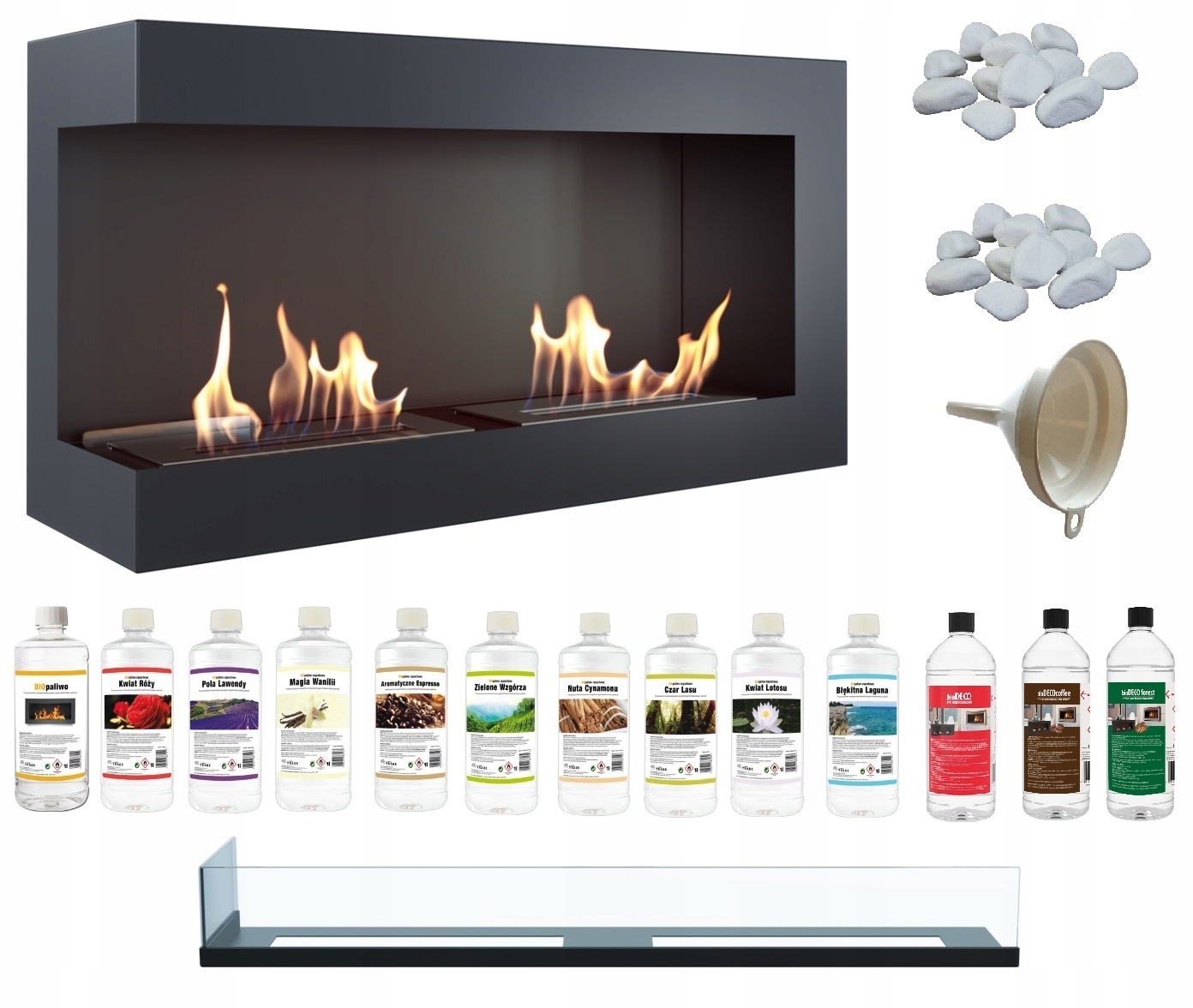 biokominek narożny DELTA lewa 900 czarny z szybą z certyfikatem TÜV + zestaw biopaliw