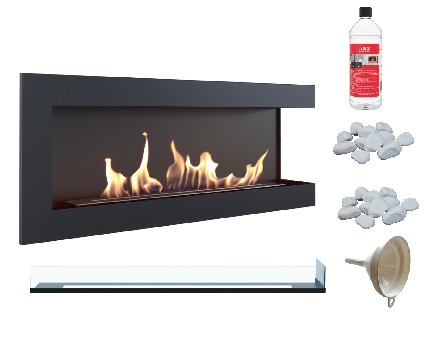 biokominek narożny DELTA prawa 1200 czarny z szybą z certyfikatem TÜV