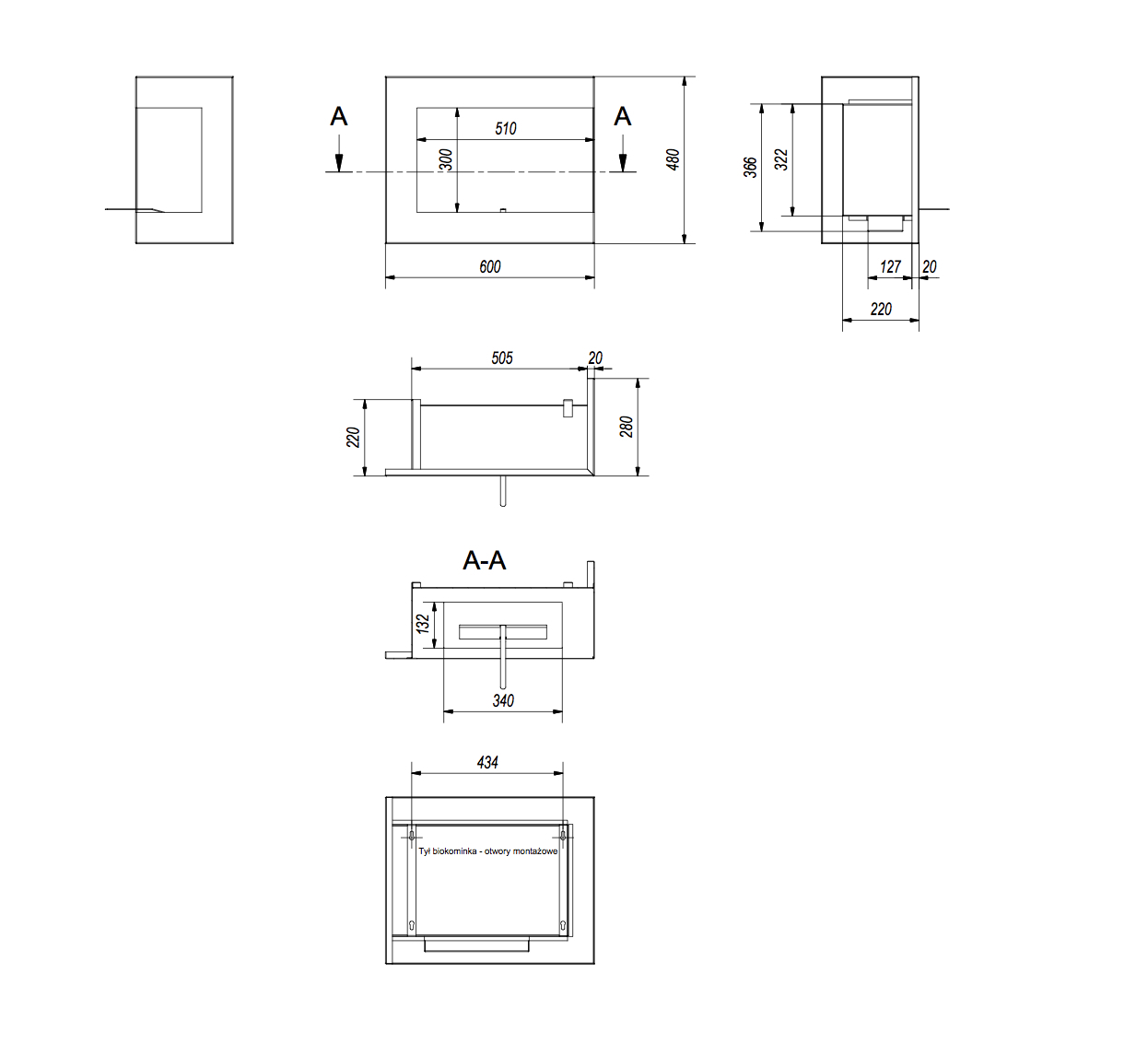 Indywidualna zabudowa - wymiary wnęki pod zabudowę: (szerokość x wysokość x głębokość) 505 x 366 x 200 mm