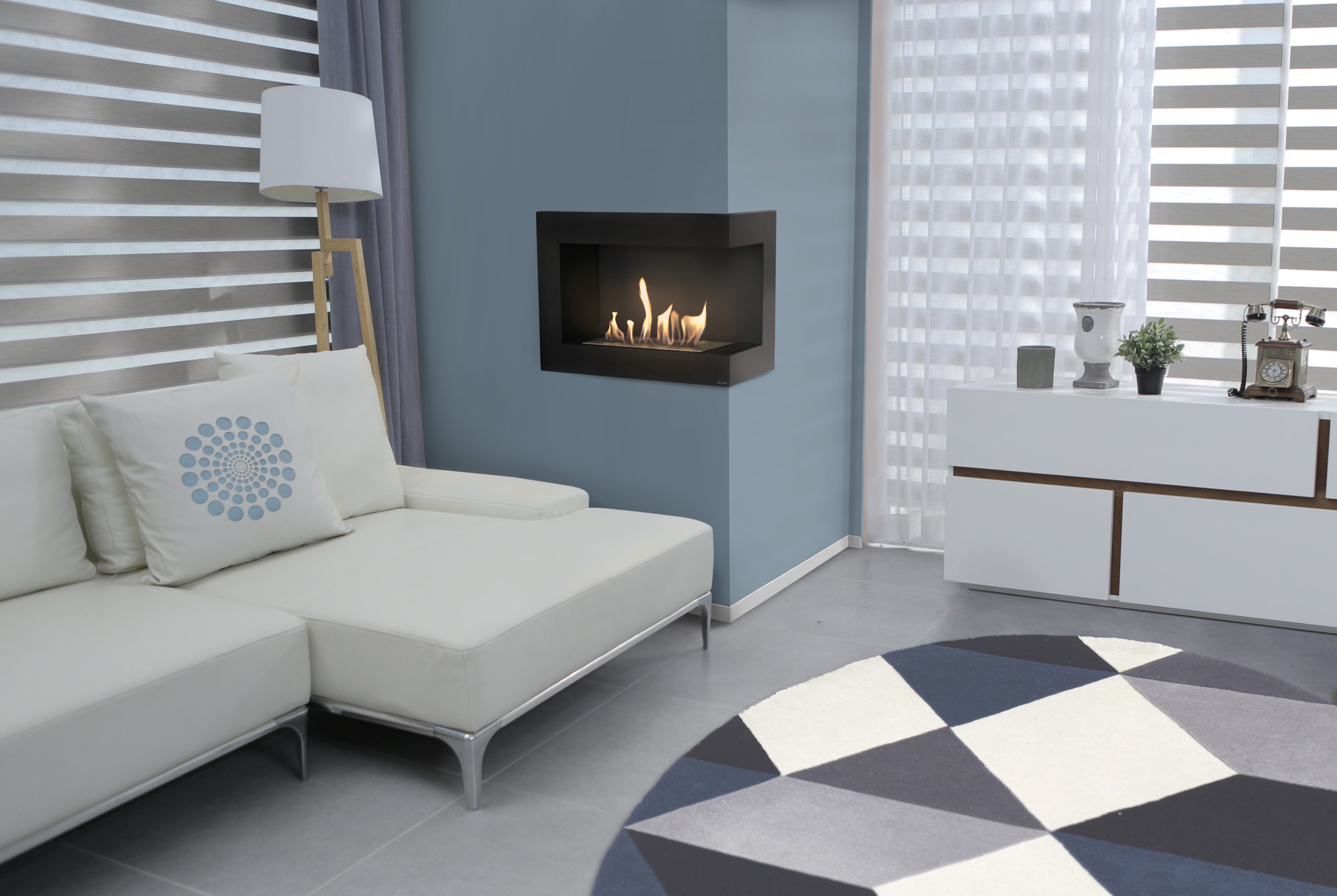Narożny biokominek otwarty jest idealnym rozwiązaniem do zabudowy we wnęce. Dzięki dwustronnej wizji ognia, panoramicznemu wyglądowi i delikatnej ramie frontowej, doskonale wpisuje się w stylistykę nowoczesnych wnętrz.