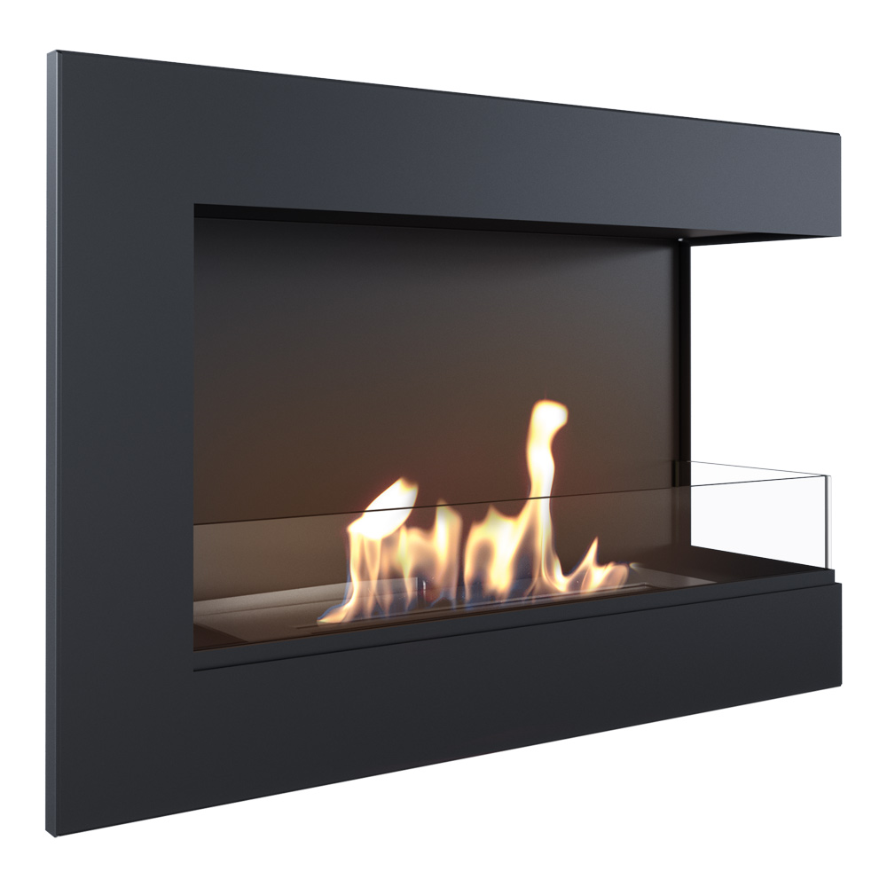 Narożny biokominek otwarty jest idealnym rozwiązaniem do zabudowy we wnęce. Dzięki dwustronnej wizji ognia, panoramicznemu wyglądowi i delikatnej ramie frontowej, doskonale wpisuje się w stylistykę nowoczesnych wnętrz.