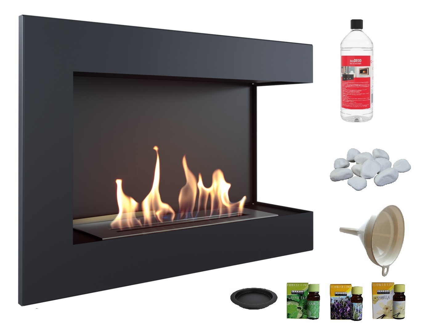 biokominek narożny DELTA prawa 700x280 czarny z certyfikatem TÜV + aromaterapia 3 olejki