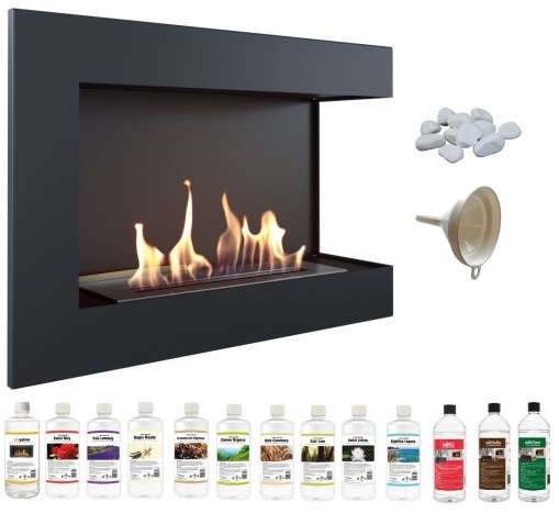 biokominek narożny DELTA prawa 700x280 czarny z certyfikatem TÜV + zestaw biopaliw