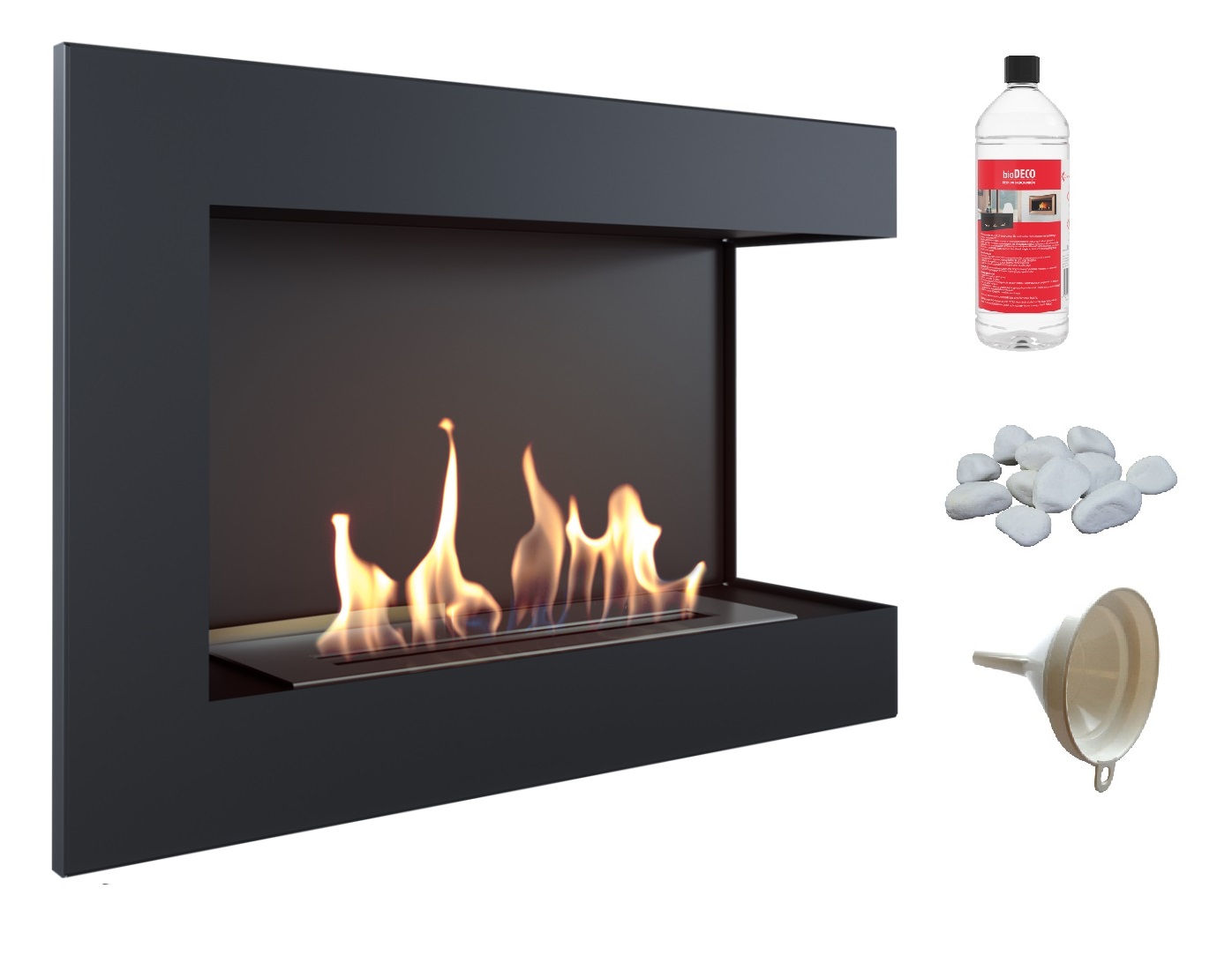 biokominek narożny DELTA prawa 700x280 czarny z certyfikatem TÜV