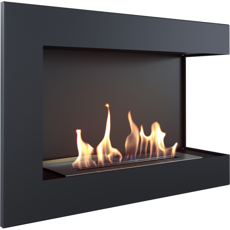 Narożny biokominek otwarty jest idealnym rozwiązaniem do zabudowy we wnęce. Dzięki dwustronnej wizji ognia, panoramicznemu wyglądowi i delikatnej ramie frontowej, doskonale wpisuje się w stylistykę nowoczesnych wnętrz.